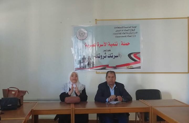 فى اطار الحملة الإعلامية التى اطلقها قطاع الاعلام الداخلى للتوعية السكانية فى إطار المشروع القومى لتنمية الأسرة المصرية تحت شعار (تنمية الاسرة المصرية … استثمار لبكره) بهدف رفع الوعى المجتمعى باهمية بناء الانسان