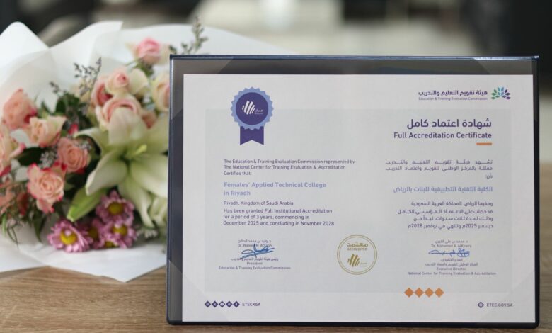 الكلية التقنية التطبيقية للبنات بالرياض تحصل على الاعتماد المؤسسي الكامل