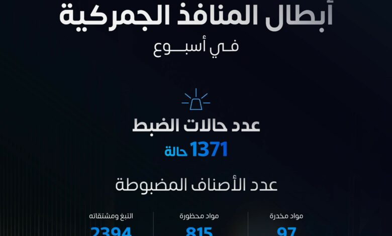 المنافذ الجمركية” تسجل 1371 حالة ضبط للممنوعات خلال أسبوع