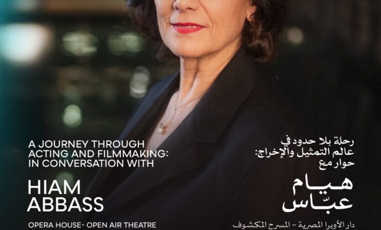 في إطار فعاليات أيام القاهرة لصناعة السينما المقامة ضمن أنشطة الدورة الـ46 لمهرجان القاهرة السينمائي الدولي، يستضيف المسرح المكشوف بدار الأوبرا المصرية اليوم الأربعاء 19 نوفمبر، جلسة حوارية بعنوان “حوار مع هيام عباس: رحلة بلا حدود في عالم التمثيل والإخراج”، وذلك من الساعة 4:30 حتى 6:00 مساء، وتدير الجلسة المخرجة والصحفية ناهد نصر.