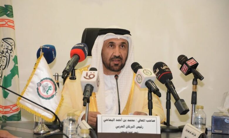 جاء ذلك في كلمة معالي محمد بن أحمد اليماحي رئيس البرلمان العربي خلال ترؤسه اليوم اجتماع لجنة فلسطين.