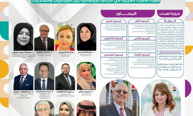 يطلق مجلس الأسرة العربية للتنمية اعمال الملتقي السابع تحت عنوان ” صورة الأسرة العربية في الدراما الرمضانية بين الإيجابيات والتحديات “