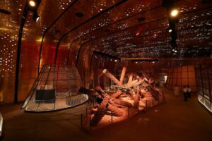 ويضم المعرض 15 عملًا فنيًا لـ 25 فنانًا من داخل المملكة وخارجها، بإشراف القيّمين الفنيين “سامر يماني” و”رزان مصري”، في تجربة فنية تستكشف حضور النخيل في الذاكرة، وتعيد قراءتها من منظورٍ جمالي يجمع بين الفن والتراث وبين الماديّ والرمزيّ، إذ يعكس تصميم المعرض دلالات متعددة من خلال فضاءات فنية تتداخل فيها عناصر النخلة من خشبٍ وحبالٍ وليف، لتصوغ مشهدًا بصريًا يشبه العريش الذي يظلل الذاكرة.