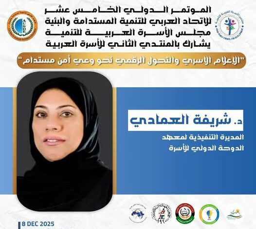وتأتي هذه الجائزة تقديراً لاستحقاق مهني واضح يعكس العمل المتواصل للدكتورة شريفة العمادي في تعزيز الوعي الأسري، وترسيخ دور البحث العلمي في معالجة التحديات المجتمعية، وتقديم نموذج ريادي للمرأة العربية في العمل التنموي.