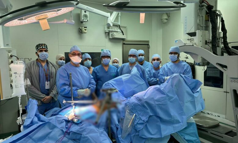 وأشارت إلى أن الجراحة تكللت بالنجاح على يد الدكتور إيهاب الحسيني، وبمشاركة كل من الدكتور محمد زهدي، والدكتور تركي، والدكتور أسامة المالكي، إلى جانب فِرَق التخدير والتمريض، فيما أشرف على العلاج الإشعاعي الدكتور محمد المغربي والفريق المعاون، حيث نُقل المريض بعدها بحالة مستقرة إلى العناية المركزة.