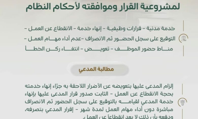 ديوان المظالم ينشر حكمًا يؤكد مشروعية إنهاء خدمة موظف لعدم قيامه بمهامه الوظيفية