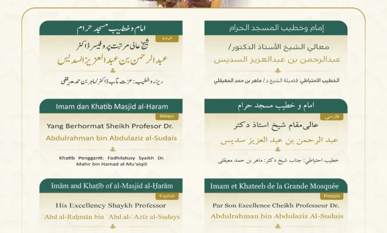 خطيبي الجمعة في الحرمين الشريفين ليوم 2 جمادى الأولى 1447هـ