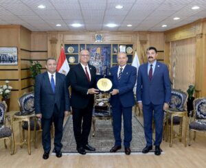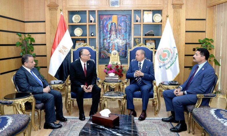 رئيس جامعة المنصورة يستقبل وفدَ الاتحاد الأفروآسيوي لتسليم جائزة “الأكاديمي الأكثر تأثيرًا” لعميد كلية السياحة والفنادق