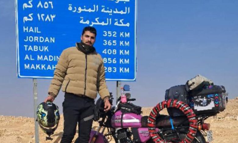 رحال نجفي يصل المدينة المنورة على دراجة نارية قادماً من النجف