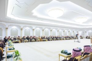 من جهته، ألقى الدكتور سعدون السعدون، رئيس مجلس إدارة الجمعيات الأهلية بالمملكة، كلمةً رفع فيها الشكر والتقدير لمقام خادم الحرمين الشريفين الملك سلمان بن عبدالعزيز، ولسمو ولي العهد رئيس مجلس الوزراء الأمير محمد بن سلمان بن عبدالعزيز ” حفظهم الله ” ، مؤكدًا أن ما تنعم به المملكة من أمنٍ واستقرارٍ وازدهار هو ثمرة رؤيةٍ قياديةٍ حكيمة وضعت الإنسان في قلب التنمية.