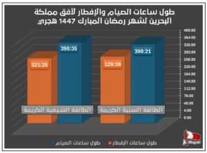 رسم بياني لطول فترة الصيام للطائفتين الكريمتين