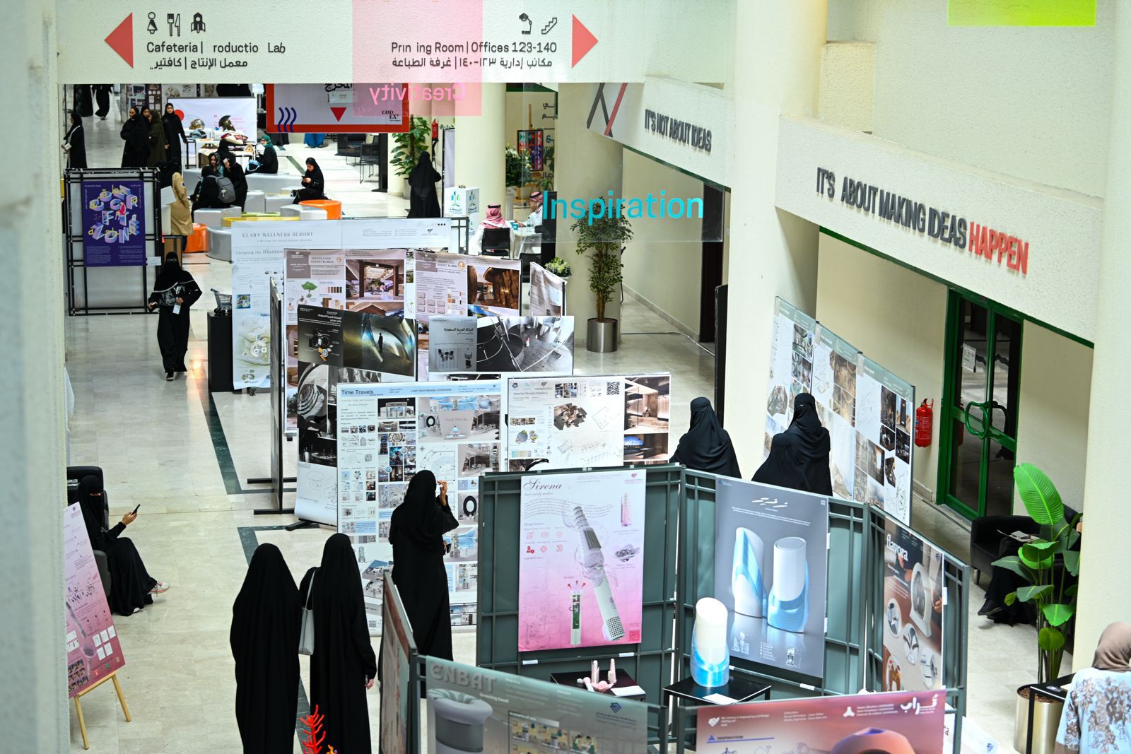 و ضم المعرض الذي اختتمت أعماله امس الجمعة أكثر من 550 مشروعًا متنوعًا من برامج الكلية الثلاث، (التصميم الداخلي، التصميم الصناعي وتصميم المطبوعات والوسائط المتعددة، كما شمل المعرض مشاريع الدفعة الأولى من خريجات الدبلوم المهني في التصميم الداخلي، في خطوة تعكس تنوع البرامج الأكاديمية وتطور المحتوى المهني بالكلية.