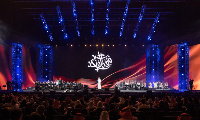وأعرب فؤاد عبدالواحد عن تشرفه بالغناء في الأمسية، قائلاً: مساء الخير عليكم جميعاً يا أهل السعودية، اليوم في هذا المساء.. الكلمة والشعر والقصيدة وأبياتها تحتفل باسم لامع وكبير في عالم القصيدة والشعر، الأمير الشاعر عبد الرحمن بن مساعد”، وأضاف شاكراً: “أحيّي جميع ضيوفنا اليوم الموجودين من عمالقة الأدب والثقافة، وأتوجه بالشكر الى وزارة الثقافة السعودية وهيئة الأدب والنشر والترجمة على تنظيمهم لهذا الحدث بالتعاون مع بنش مارك، والفرقة الموسيقية بقيادة المايسترو أمير عبد المجيد”، والى جميع الفنانين المشاركين في الحفل الفنانة أنغام، وعايض، وأميمة طالب.