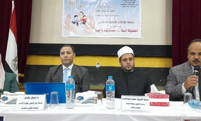 وفى ذات السياق تحدث فضيلة الشيخ/محمد ضياء الدين المشرف على الفتوى بمنطقة وعظ الوادى الجديد مؤكدا على اهمية التعاليم الدينية فى تحصين الابناء وحمايتهم من الظواهر السلبية موضحا أن الأسرة هى اللبنة الاولى للمجتمع وهناك علاقة وثيقة بين صلاح الأسرة واستقرار المجتمع .كما تطرق الى الأسس الدينية السليمة للتنشئة الأسرية بما يوفر الأمن والطمأنينة للاطفال