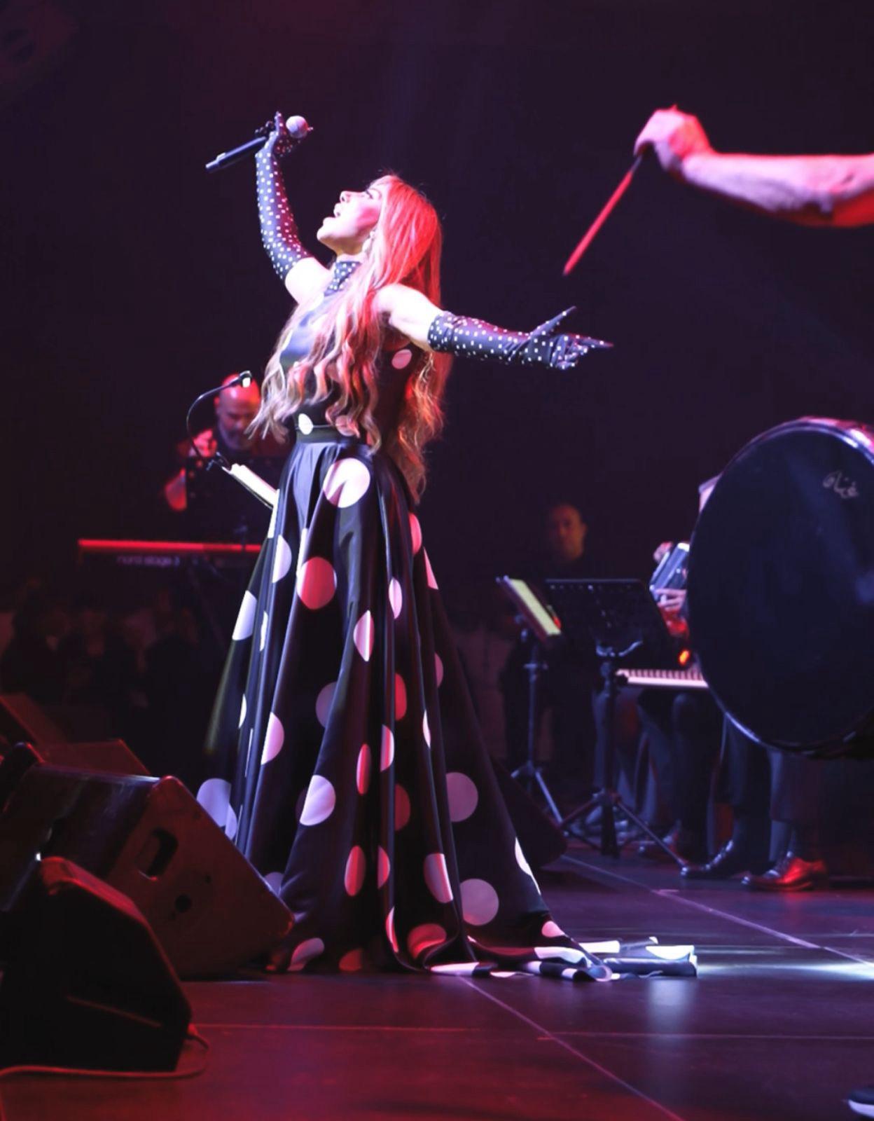 وقد تألقت نجوى كرم خلال الحفل بمجموعة من أنجح أعمالها الغنائية التي يحفظها الجمهور عن ظهر قلب، ما ساهم في خلق أجواء طربية مليئة بالحماس والتفاعل، وسرقت الأنظار بإطلالتها الأنيقة على المسرح، حيث ارتدت فستاناً طويلاً بألوان الأبيض والأسود، تميّز بتصميمه الراقي وتفاصيله الراقية التي جمعت بين البساطة والرقي.