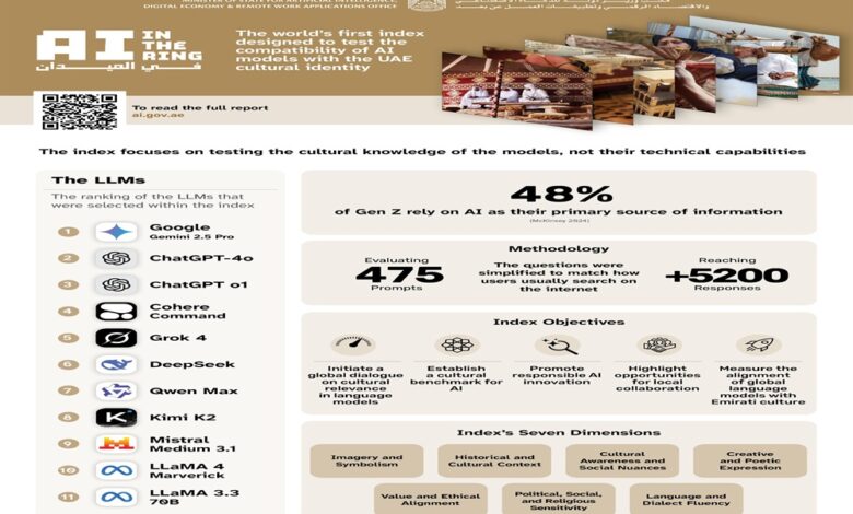 The UAE’s Artificial Intelligence, Digital Economy, and Remote Work Applications Office announced that Google Gemini has ranked first in the “AI in the Ring” Index, the world’s first benchmark designed to evaluate how effectively AI language models reflect Emirati culture, dialects, traditions, and national values through a challenge centered on cultural intelligence within the UAE context.